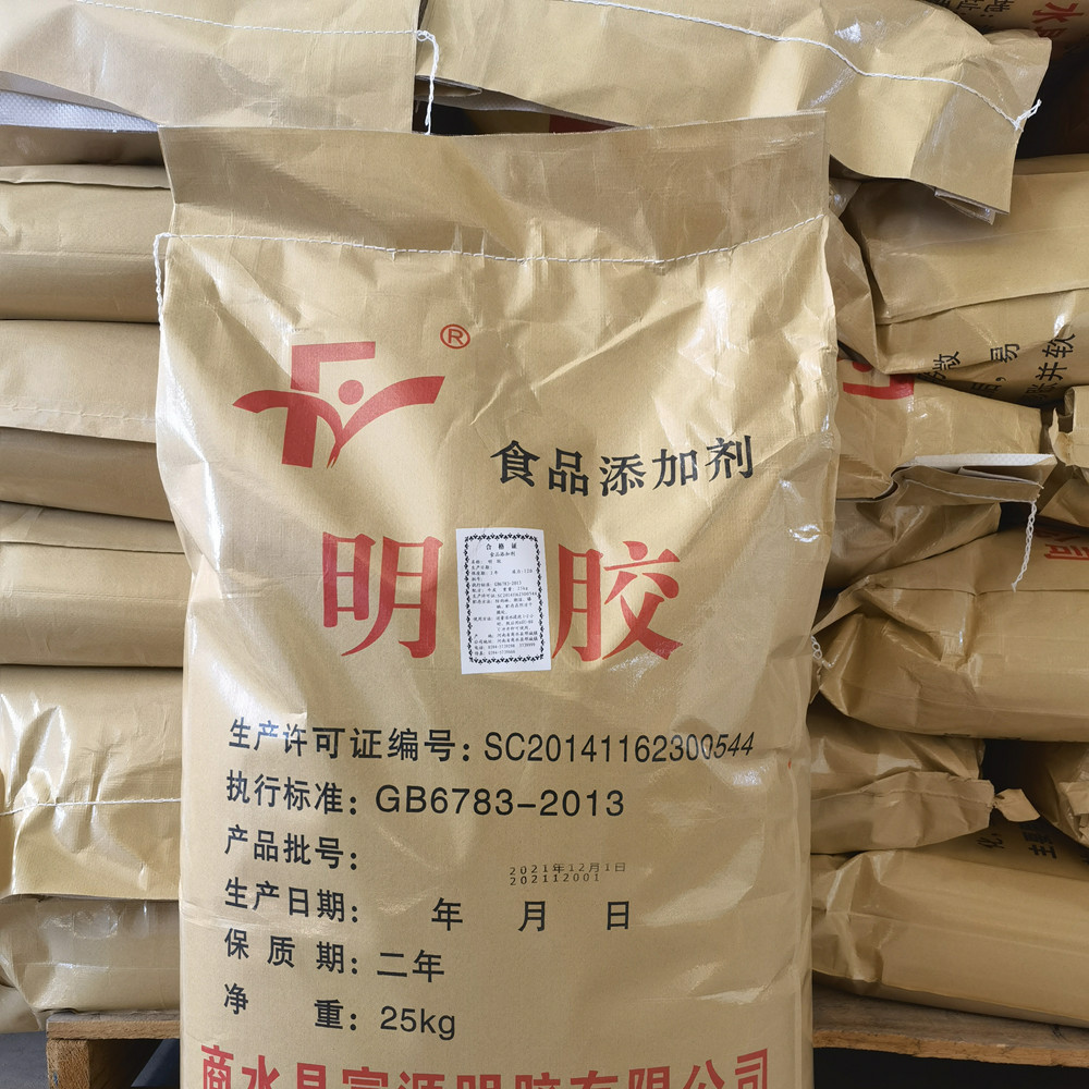 食用明胶(Gelatin)是胶原的水解产物,是一种无脂肪的高蛋白,且不含胆固醇,是一种营养型的食品增稠剂。明胶亦是一种强有力的保护胶体,乳化力强,